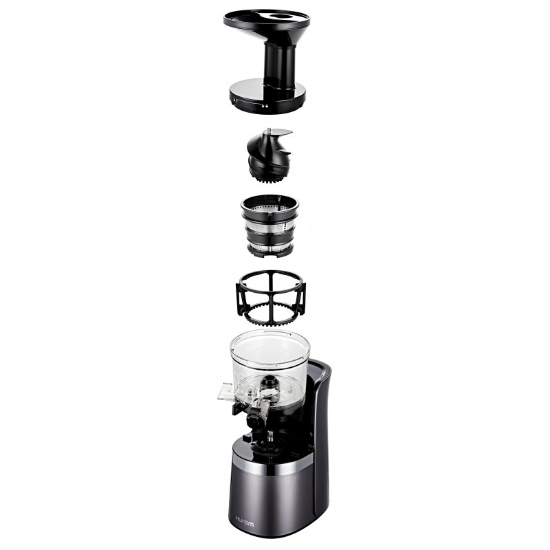 La serie básica Hurom S13 contiene todos los elementos esenciales que hacen que los extractores Hurom sean excepcionales en un producto compacto y sencillo: la tecnología patentada Slow Squeeze de Hurom , filtro fino, cómoda tolva doble, cámara grande de 500 ml y botón de operación con un solo toque.